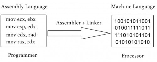 - 어셈블리어(Assembly language) : 0과 1로 이루어진 기계어를 사람이 읽을 수 있는 형태로 변환한 언어