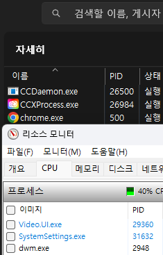 window 에서 작업관리자 - 자세히 누르면 프로세스별 PID가 나온다!