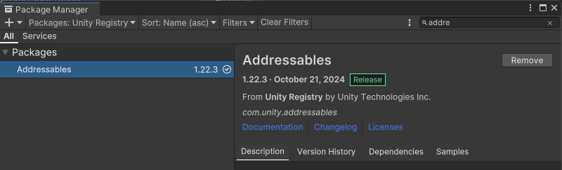 유니티(Unity) - Addressable(어드레서블) 사용법(1). 설치 및 준비