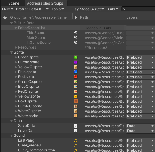 - Scene 로딩도 Addressables 로 가능 (SceneManager.LoadScene() 대신 사용 가능)