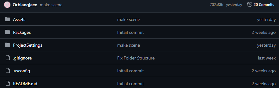 원격저장소에는 Assets, Packages, ProjectSettings 등 gitignore로 제외시키지 않은 파일들이 올라와 있기 때문에 로컬저장소에 해당 파일들만 삭제함!
